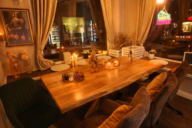 Für besondere Anlässe steht euch unsere gemütliche Tischecke zur Verfügung, die für kleinere Gruppen von sechs bis maximal acht Personen reserviert werden kann. Sie eignet sich ideal für Geburtstage, feierliche Anlässe oder einen ruhigen, entspannten Abend unter Freunden. Während eures Aufenthalts kümmern wir uns selbstverständlich um die Getränkeversorgung.